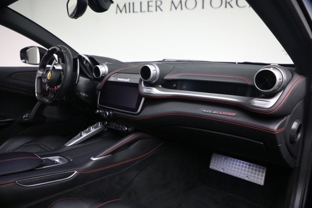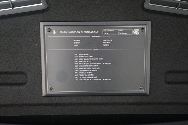Nero/Nero, Nero Carpets, Special Thick Stitching and Horses in Rosso, Carbon Fiber Steering Wheel + LEDs, Apple CarPlay, Passenger Display, Yellow Tach, Scuderia Ferrari Shields, Front Grill with Chromed Edges, Panoramic Roof, Red Calipers, 20 Forged Matte Black Wheels